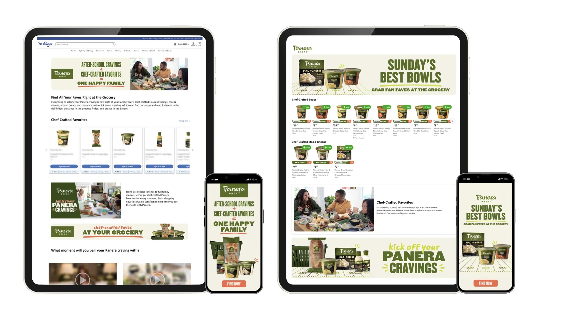 Banner ads connect finding Panera in grocery to enjoying them during occasions at home